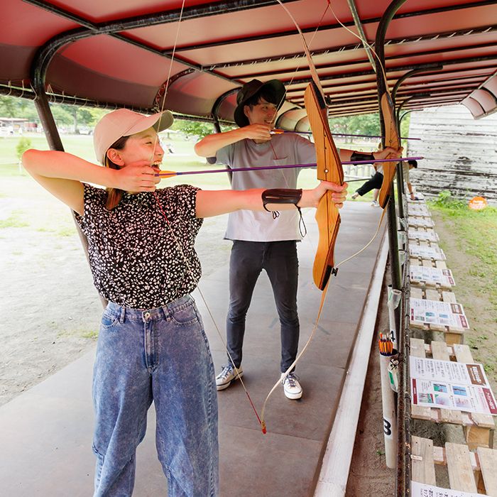 スタッフが構え方から丁寧に教えてくれるので、初心者でもすぐ楽しめるアーチェリー体験。 大人も子どもも夢中になり、友達同士で勝負するとさらに盛り上がります! 【開催時間】 12:00 ~ 15:00 / 16:00 ~ 19:45