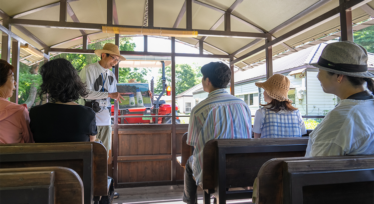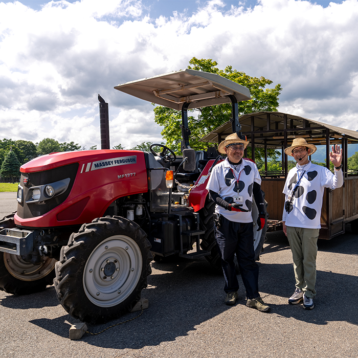 大型トラクターが引く客車に乗り込み、牧場の雄大な景色をのんびり巡るアクティビティ。風を感じながら移動する爽快感と、牧草地ならではの伸びやかな眺望が魅力です。車内案内を通じて、酪農や放牧についての小さな学びも得られる内容。牧場のスケール感を気軽に味わえるため、子どもから大人まで幅広く人気があります。